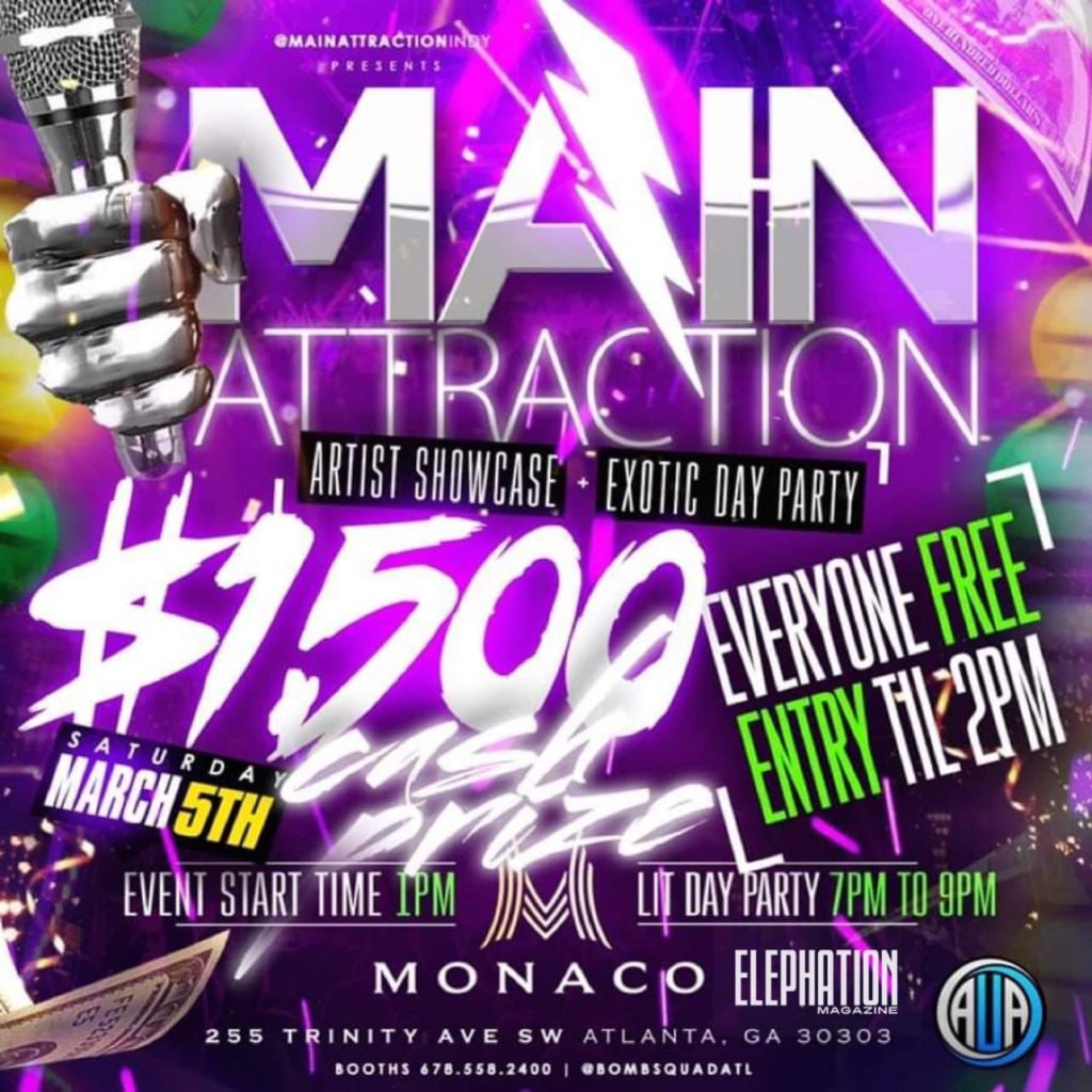 March 5th 2022 Calling All Artist and Dancers $1’500 giveaway to the best artist and $500 giveaway to the top dancers March 5th Day Party everybody Free until 2pm. To perform or for more information DM @atlantaunsignedartist